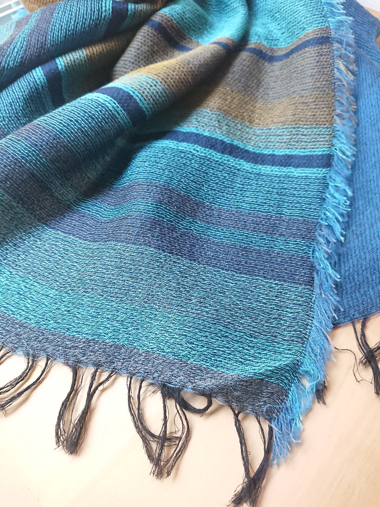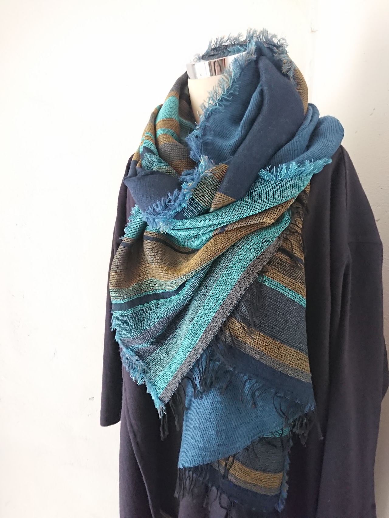 播州織 cotton × wool shawl __ border 220 泳月K